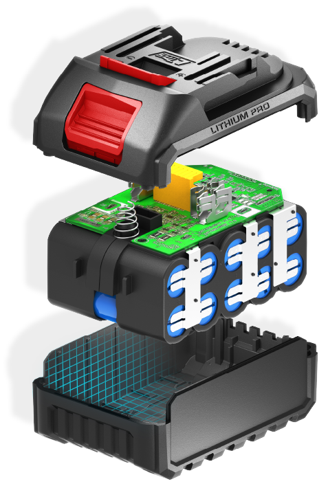 При использовании двух 20-вольтовых аккумуляторов LMS вы получаете питание в 40 В, и все ваши беспроводные инструменты работают в рамках одной системы.