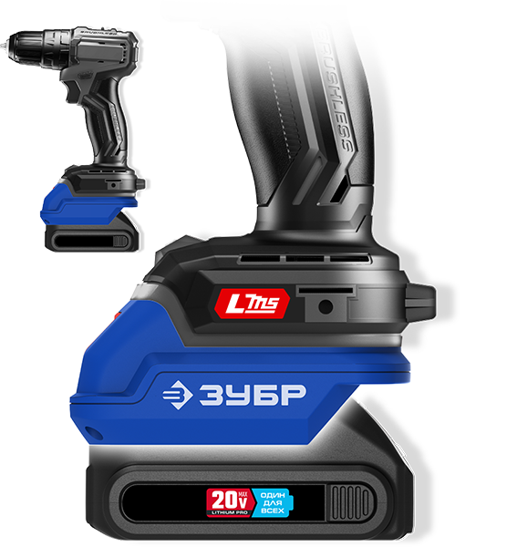 Подходит для более 50% аккумуляторного инструмента российского рынка за счёт совместимости с разъёмом M-SYSTEM.